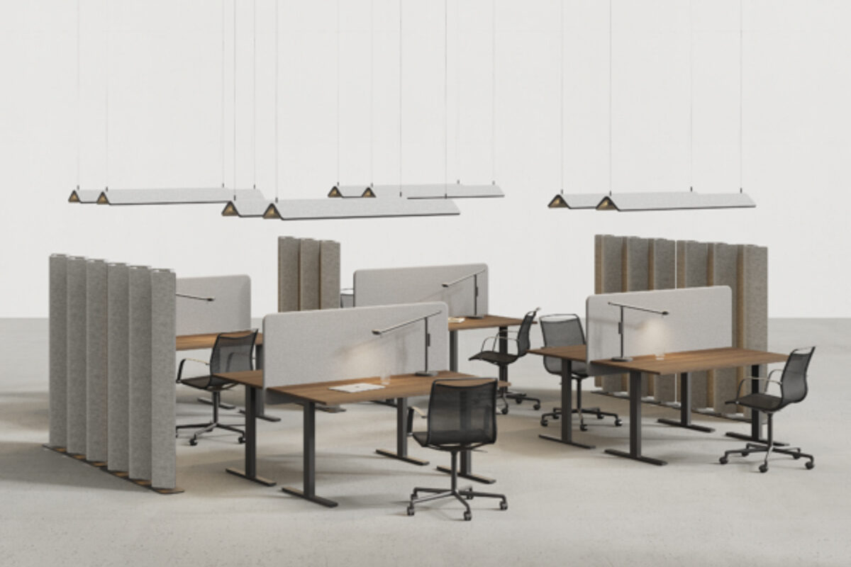 Charakter osvětlení jsou šedé textilie, které vytvářejí tlumenější osvětlení