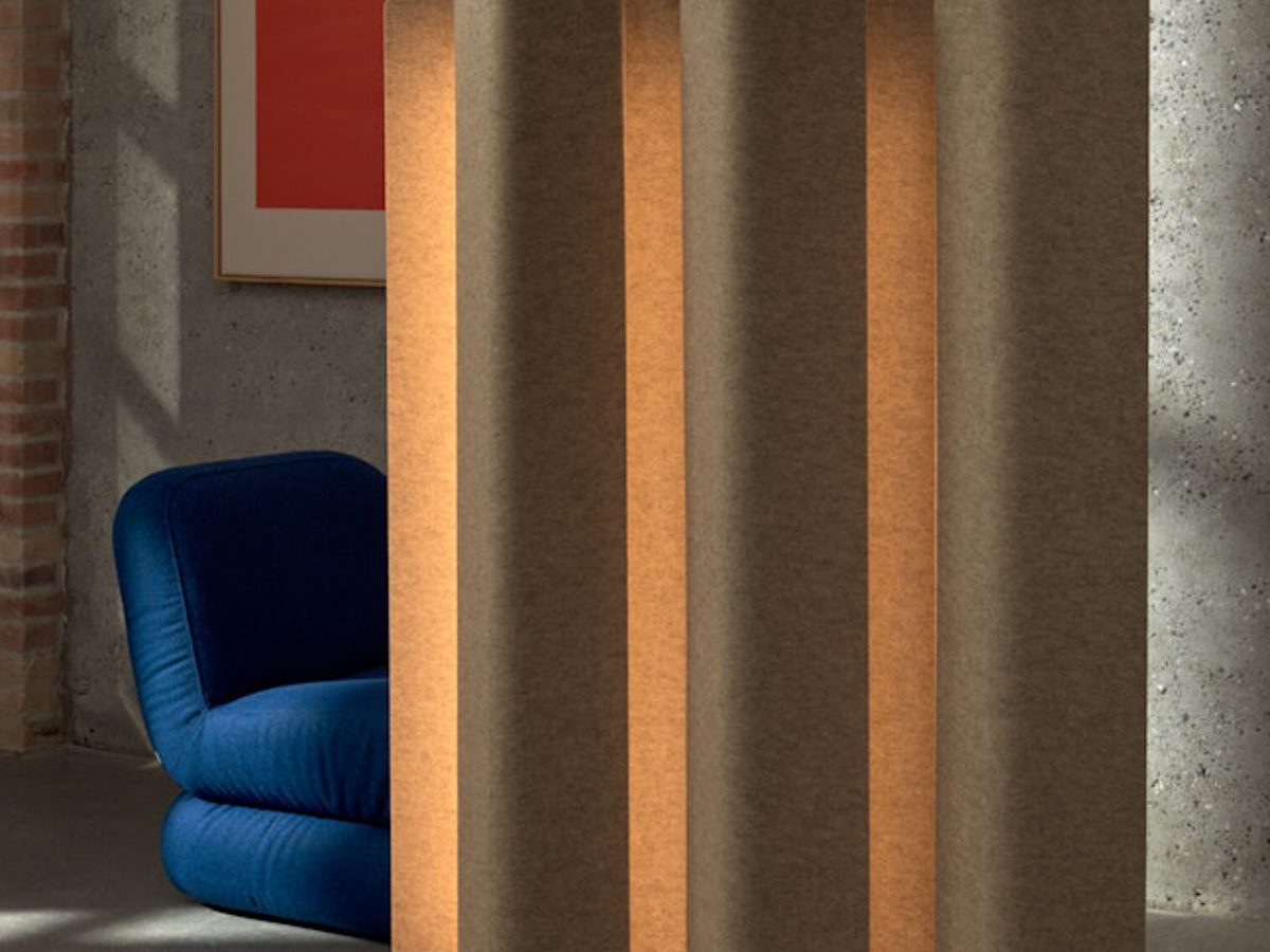 Vika Floor Screen je dostupná jako světelný sloup (v menší verzi), nebo jako dělící stěna (ve větší verzi).