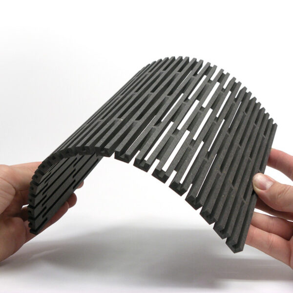Ohybné akustické obklady Dukta představují inovativní materiál pro moderní interiérový design. Díky speciálnímu řezání získávají pružnost a nabízejí skvělé akustické vlastnosti v celém frekvenčním rozsahu.