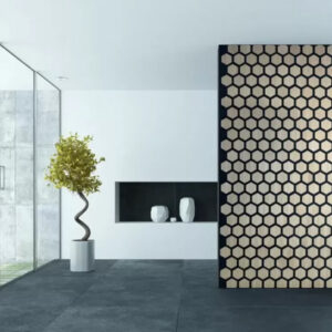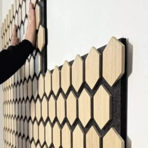 Vyrobené z prémiových materiálů. Povrch PET plsti poskytuje vynikající zvukově absorpční vlastnosti s klasifikací požární odolnosti B-s1, d0. Panely jsou doplněny o 0,3 palce hrubé desky z laminovaného MDF ve tvaru šestiúhelníku. Jsou navrženy pro jednoduchou instalaci na stěny a stropy.