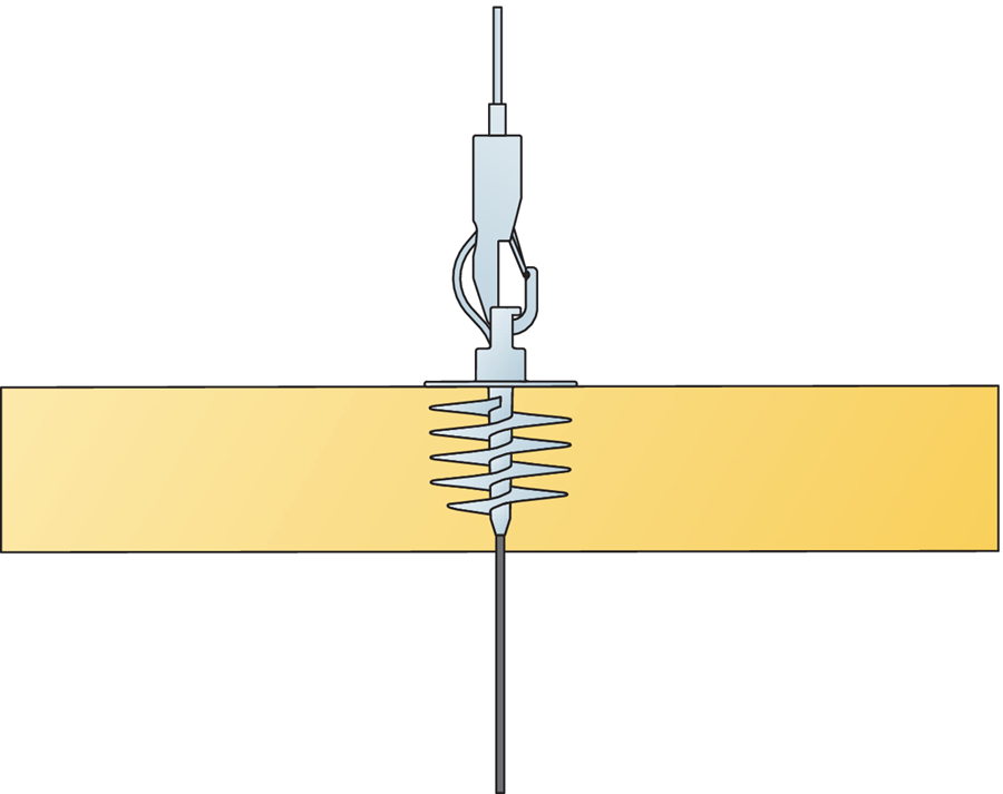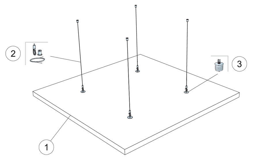 Kotvu lze přišroubovat do zadní časti zvukového absorbéru a panel podvěsit pomocí závěsného systému.