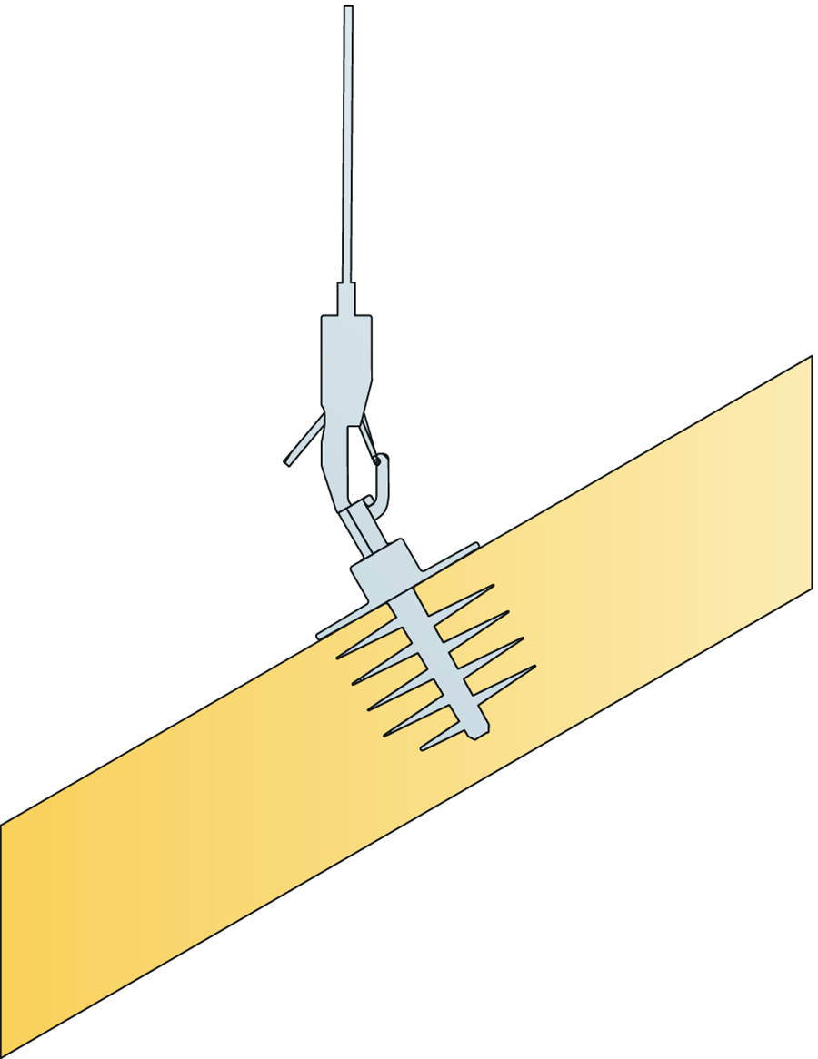 Kotva Ecophon Solo™ pro závěsné akustické panely z řady uchycení Connect™ je vhodná pro montáž horizontálních akustických panelů.