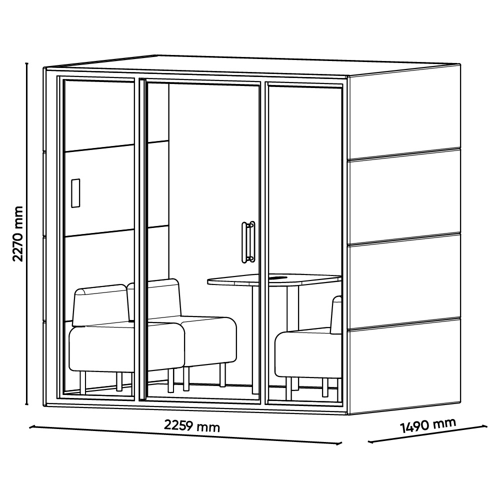Meeting room CHAT⁴ pro čtyři osoby poskytuje pohodlné odhlučněné prostředí určené pro efektivní meetingy, brainstorming či soukromé konzultace.