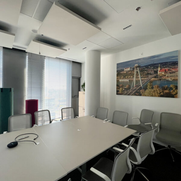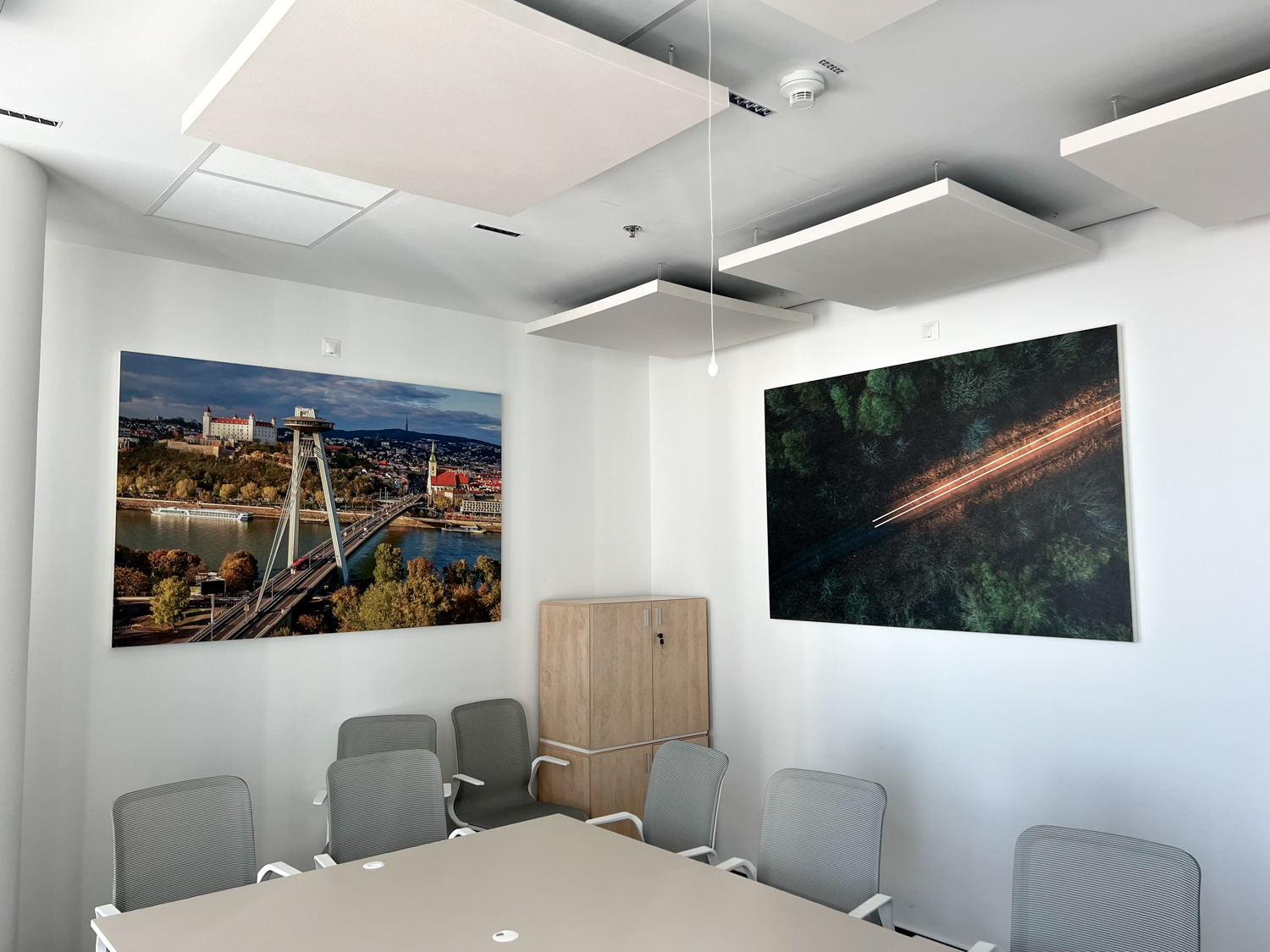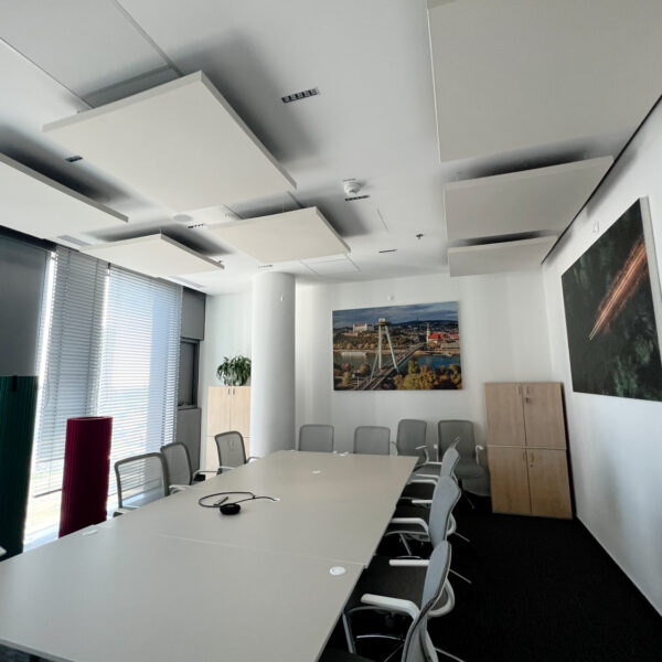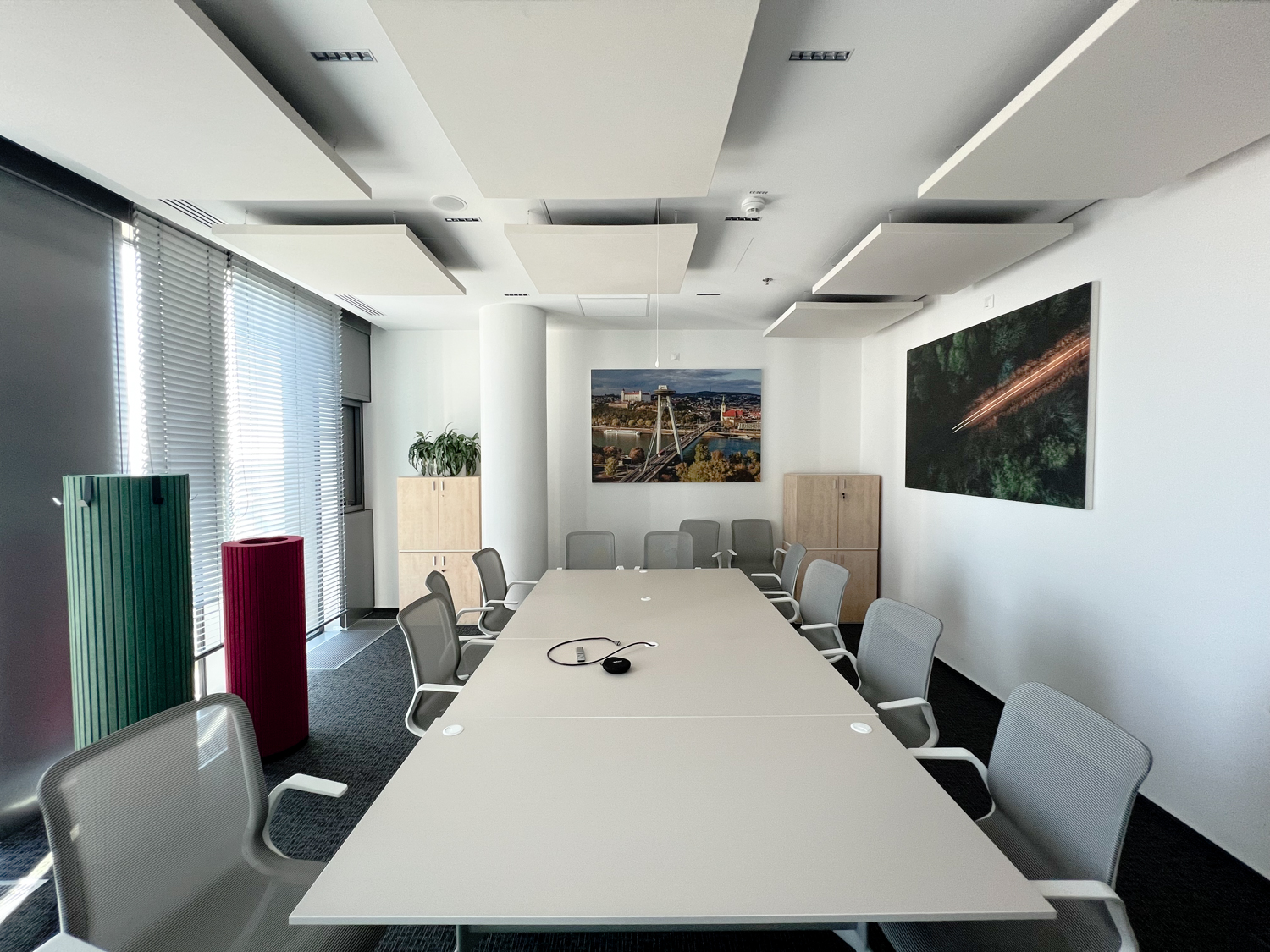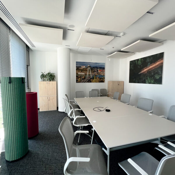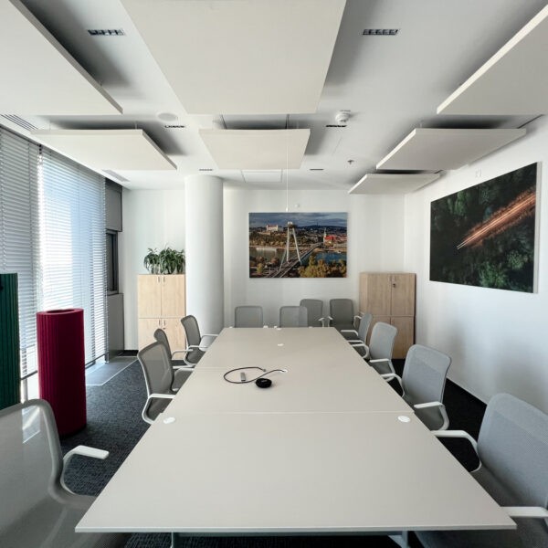 Společnost Kantar Slovakia se na nás obrátila s problémem špatné akustiky v zasedací místnosti. V prostoru byla výrazná ozvěna, což narušovalo průběh porad a snižovalo komfort komunikace. Problém způsobovaly zejména tvrdé, odrazivé povrchy a nedostatek akusticky absorpčních prvků.