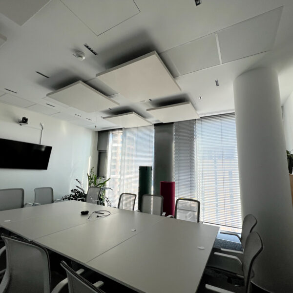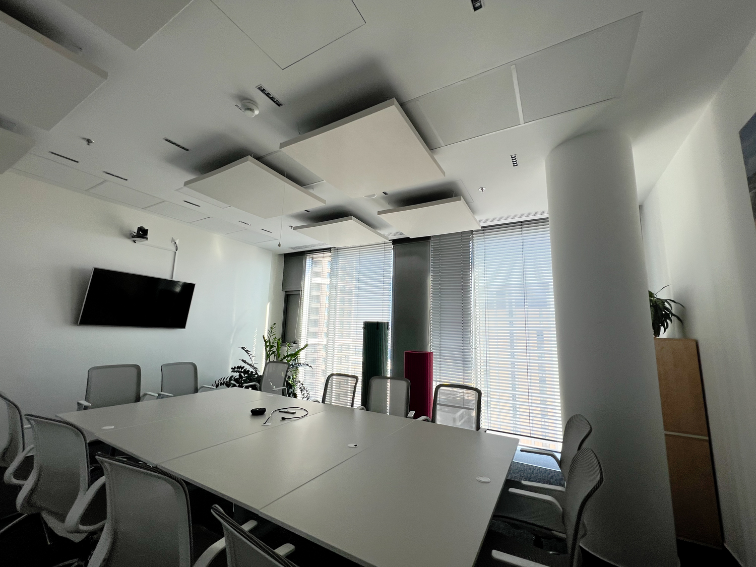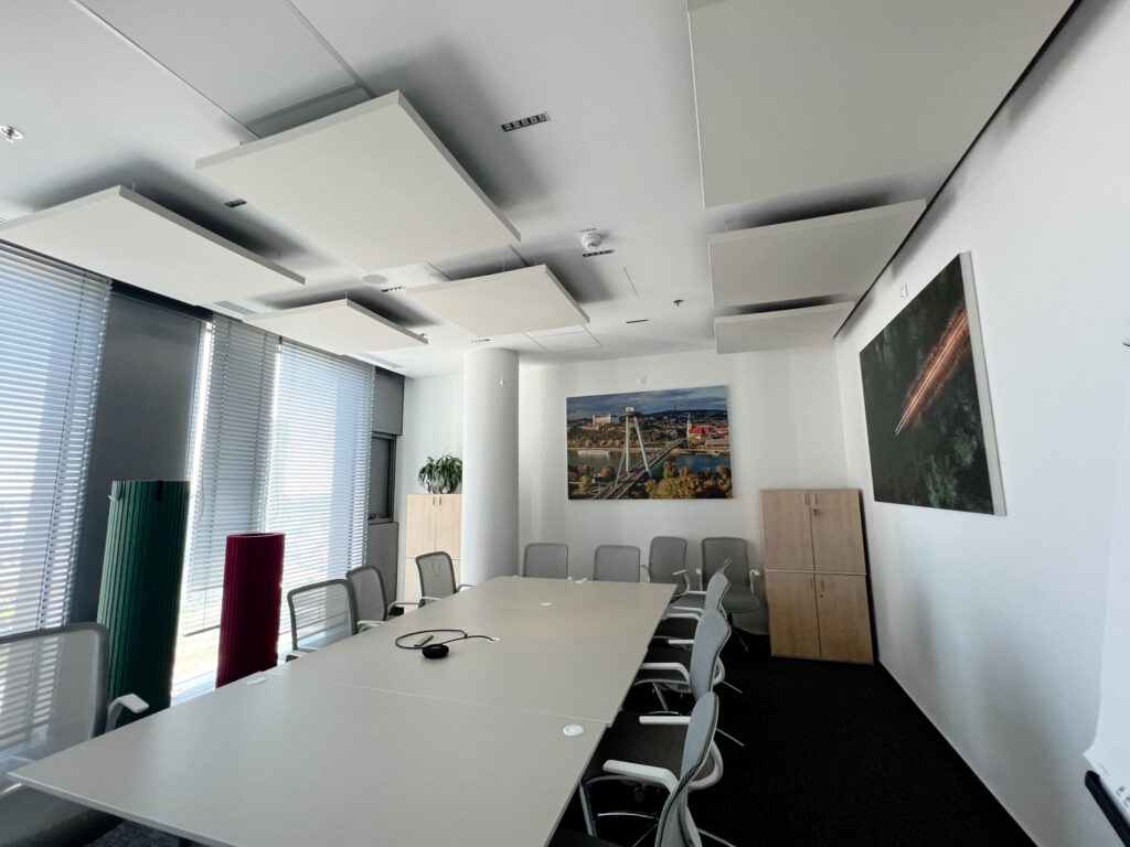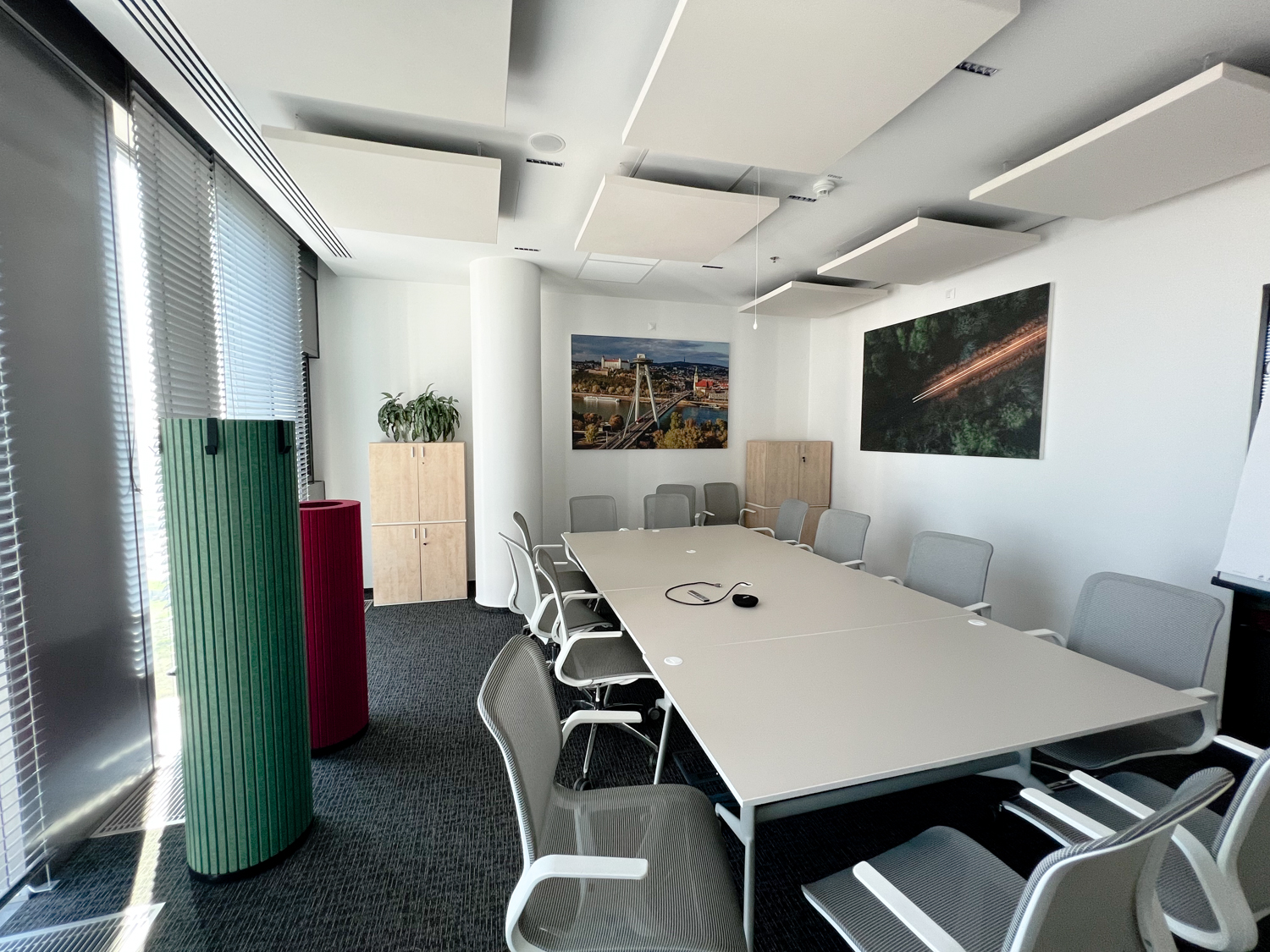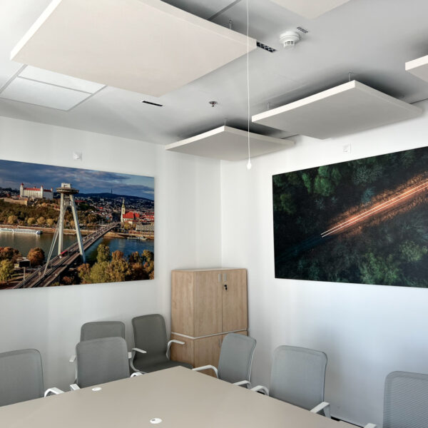 Společnost Kantar Slovakia se na nás obrátila s problémem špatné akustiky v zasedací místnosti. V prostoru byla výrazná ozvěna, což narušovalo průběh porad a snižovalo komfort komunikace. Problém způsobovaly zejména tvrdé, odrazivé povrchy a nedostatek akusticky absorpčních prvků.