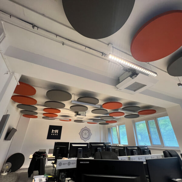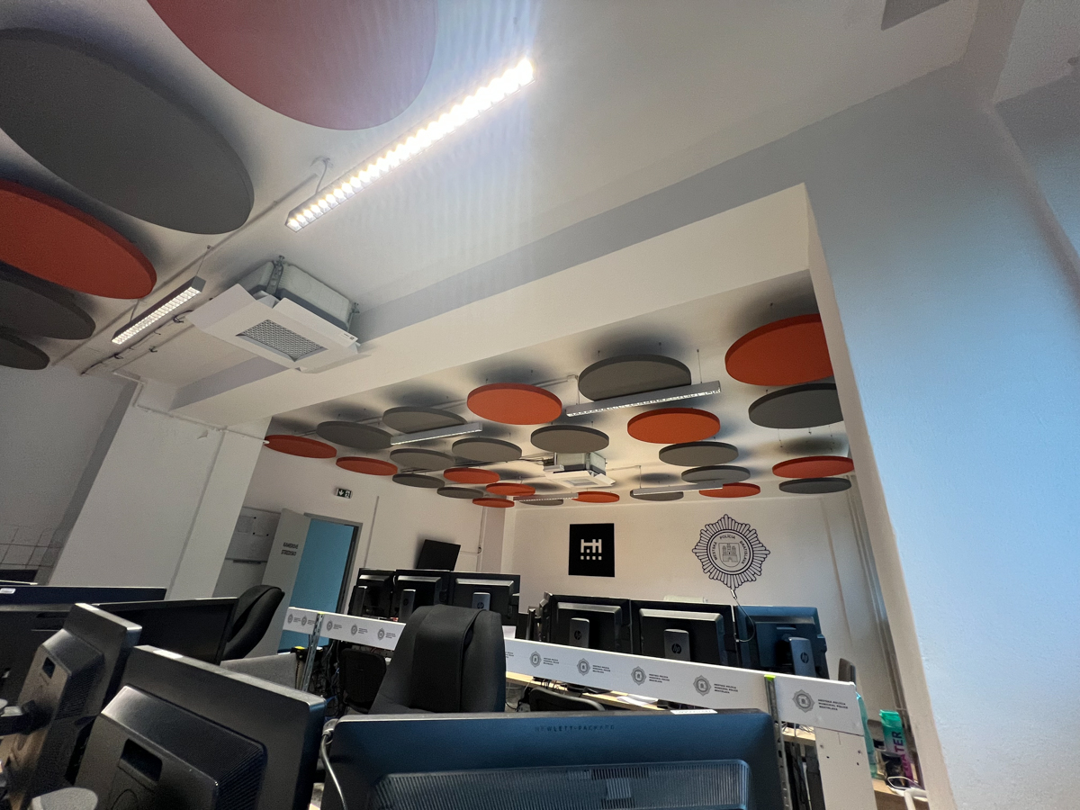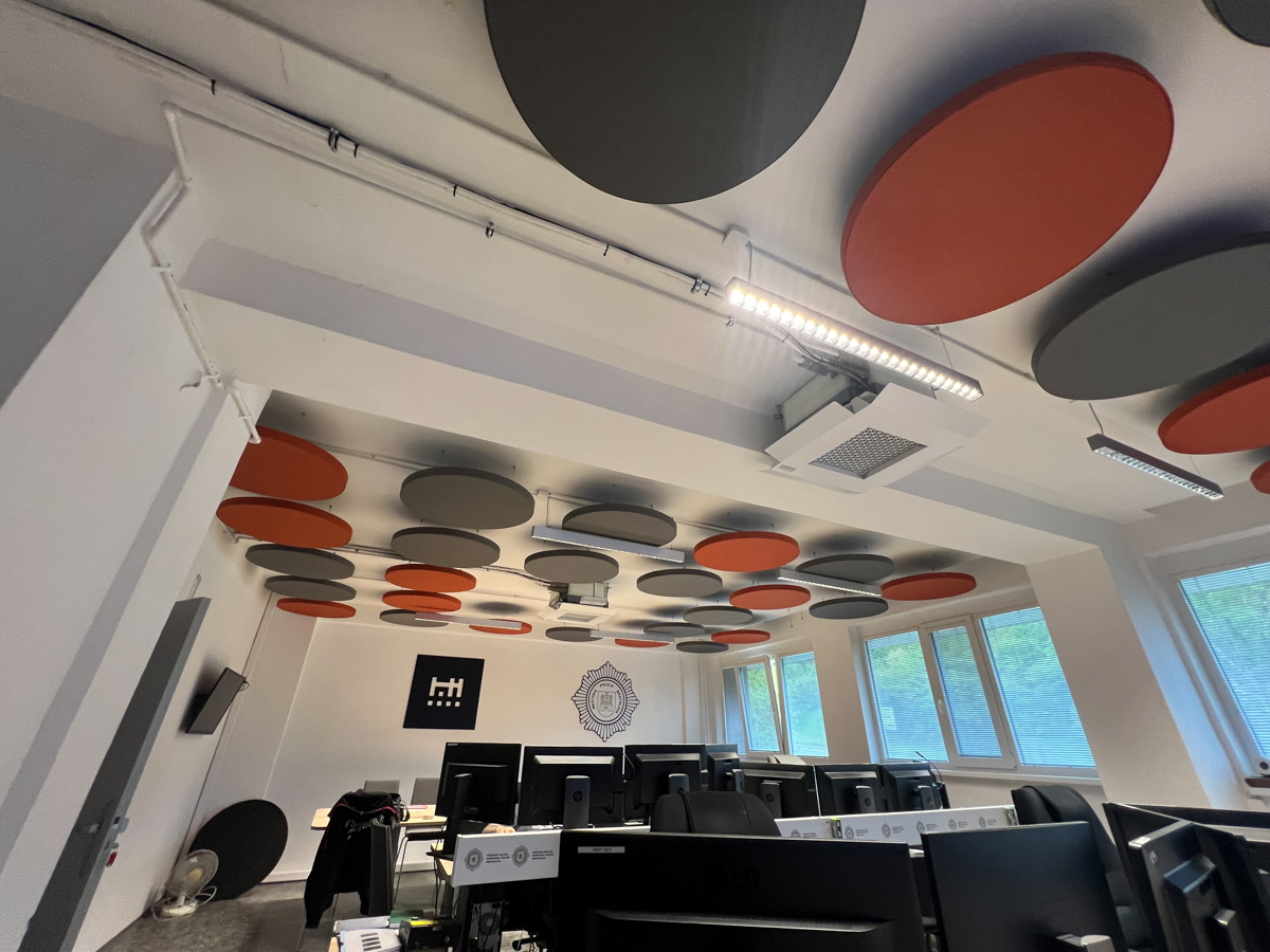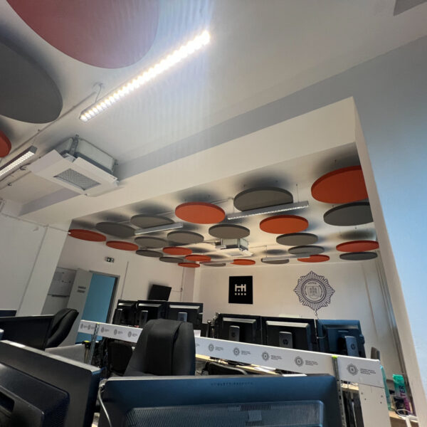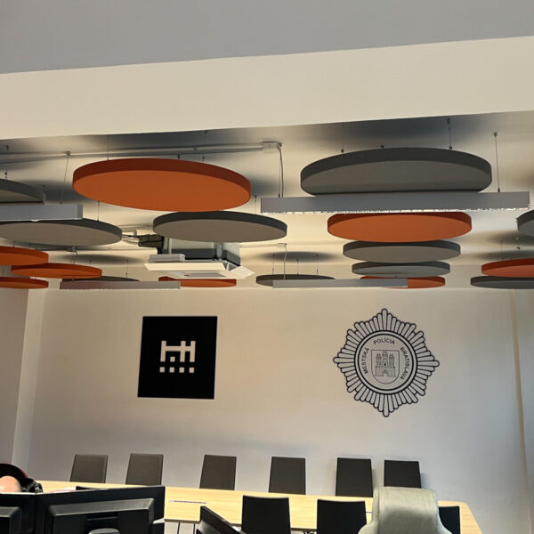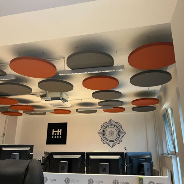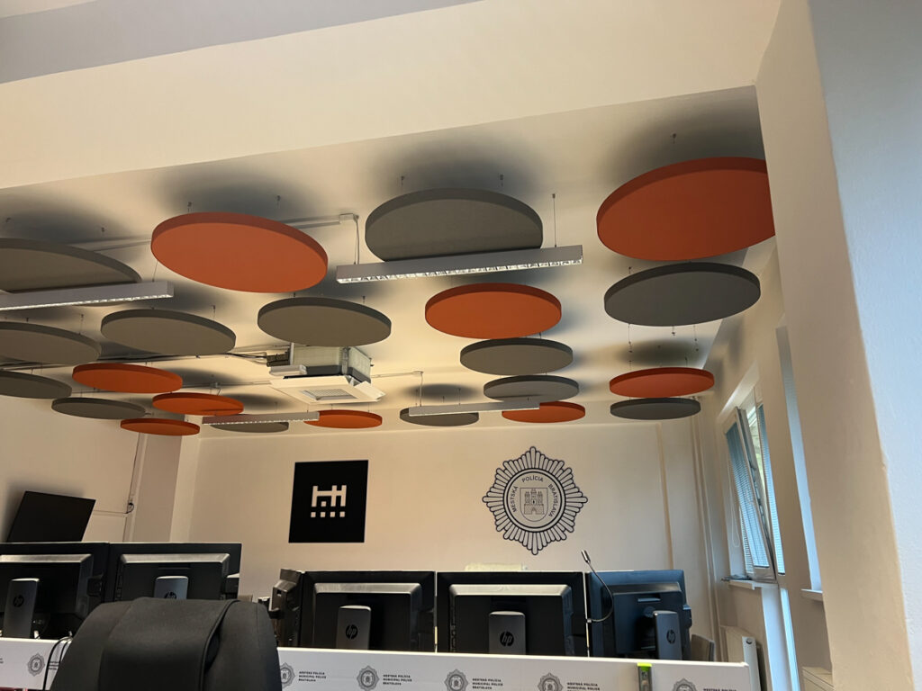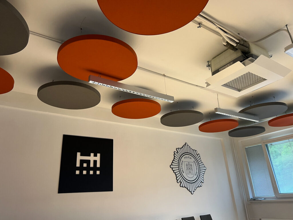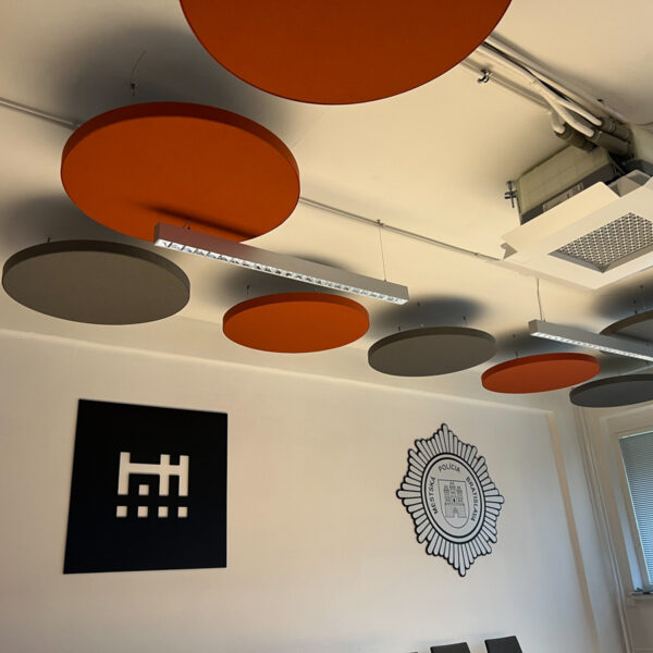 Navrhli jsme a následně nainstalovali akustické panely Decibel Echo Moon, kruhové absorpční prvky, které jsme barevně přizpůsobili dle přání klienta. Tyto panely účinně tlumí ozvěnu a zlepšují srozumitelnost mluveného slova, což je klíčové právě v prostředí telefonické komunikace.