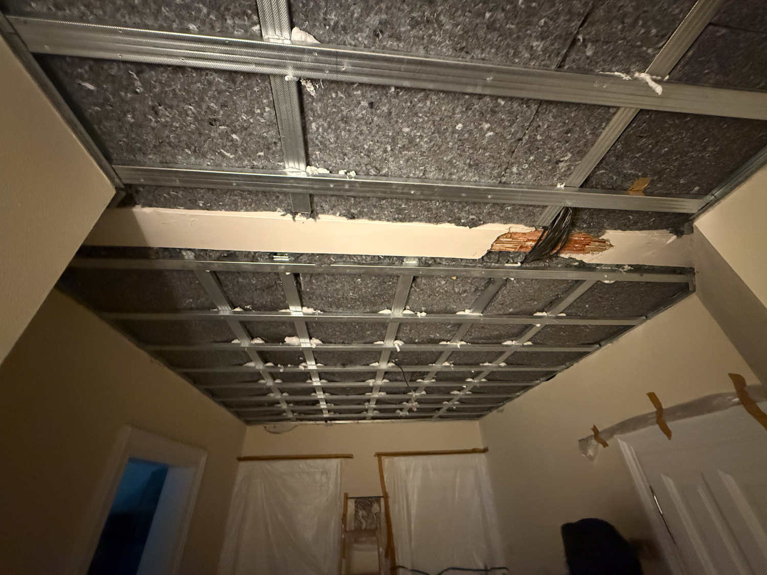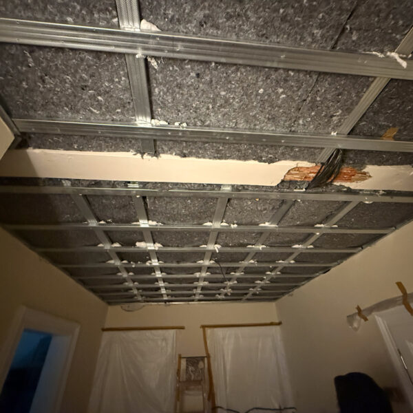 Výsledkem je účinné odhlučnění i v prostoru s náročnou stropní konstrukcí.